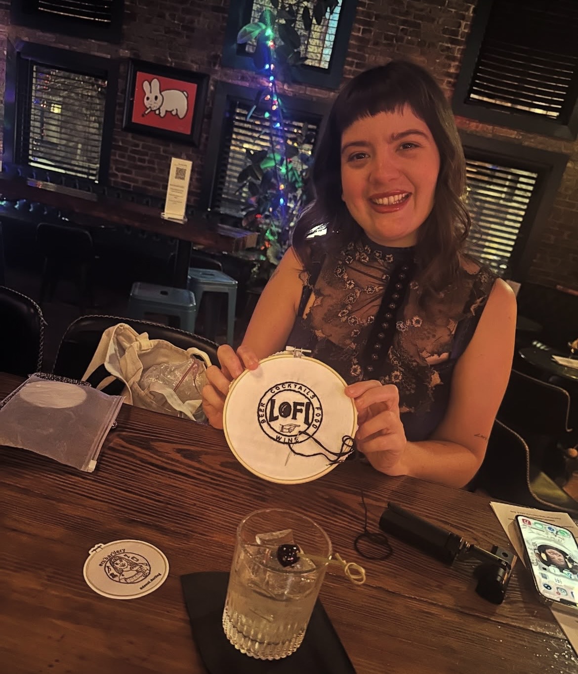 I’m Danni! Nanny by day and avid crafter by night! Based in Brooklyn I love to explore new bars and restaurants locally and on my travels. Em”bar”dery was born while traveling in Helsinki and embroidering something at a bar and thinking “it would be fun to embroider my limoncello spritz” and thus I started my series where I embroider something at the bar from the bar I’m at. Every embroidery piece is then gifted to the bar. Follow along as I continue embroidering my way through cities!